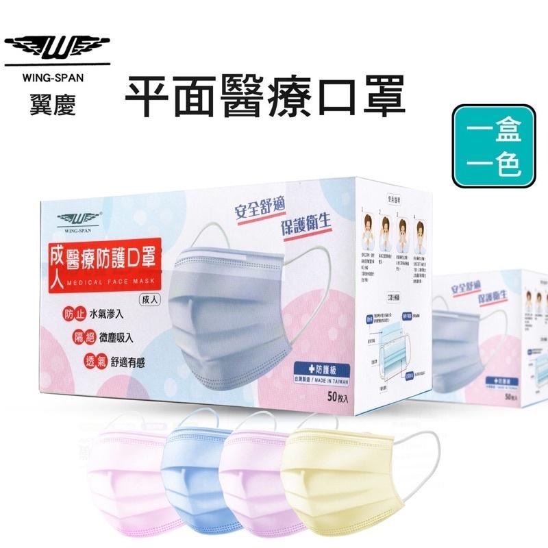 🌟翼慶-醫療平面口罩-一盒50入粉紅色/牛仔藍色/藍色/紫色/黃色 成人口罩/兒童口罩