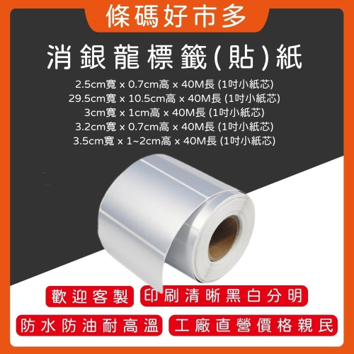 【商品規格】消銀龍紙 1吋紙芯,搭配樹脂抗刮碳帶(高密度樹脂抗刮碳帶),需要熱轉印條碼機才能列印。