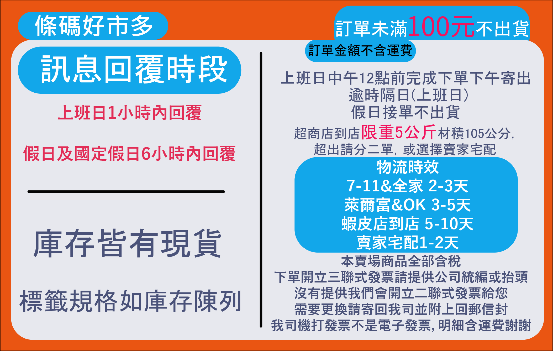※ 條碼好市多(BARCOSTCO)售價均含稅且開立手寫二聯式或三聯式統一發票,如需開立三聯式請在備註輸入貴司統一編號和抬頭