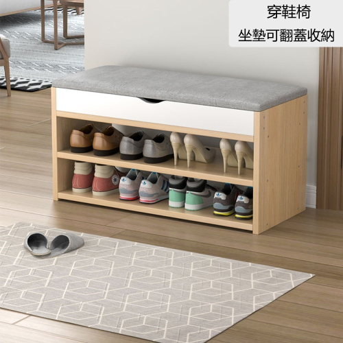 ◎商品名稱:穿鞋椅(坐墊帶收納)