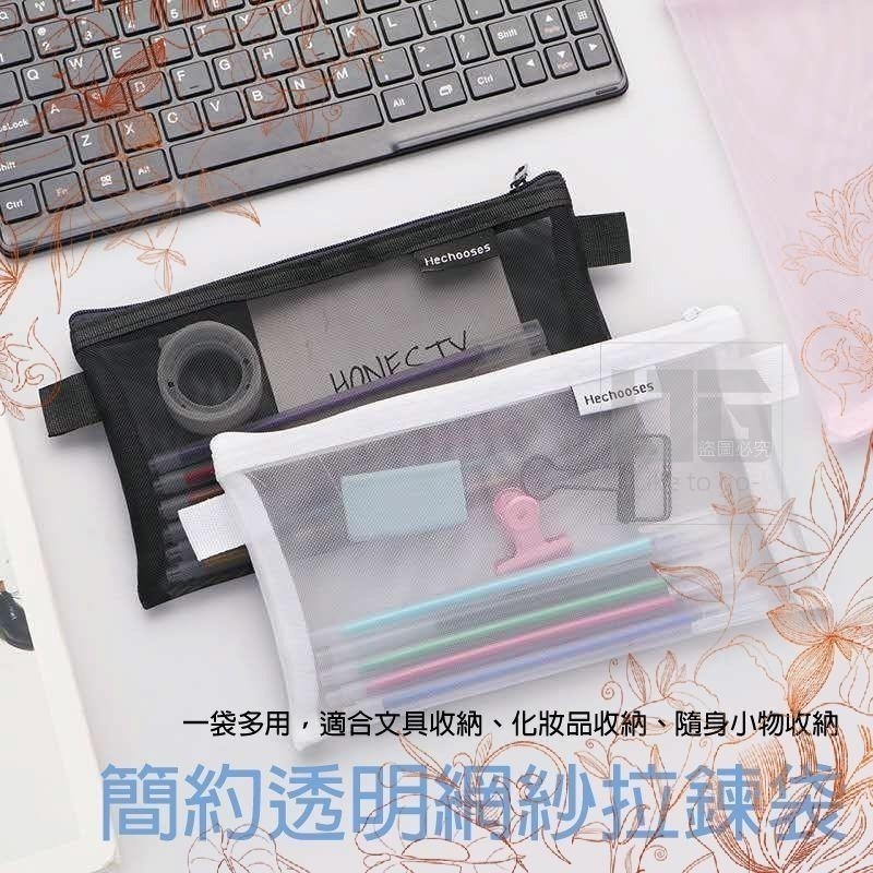 簡約透明網紗拉鍊袋 文具 拉鍊袋 文具袋 筆袋 【過生活】