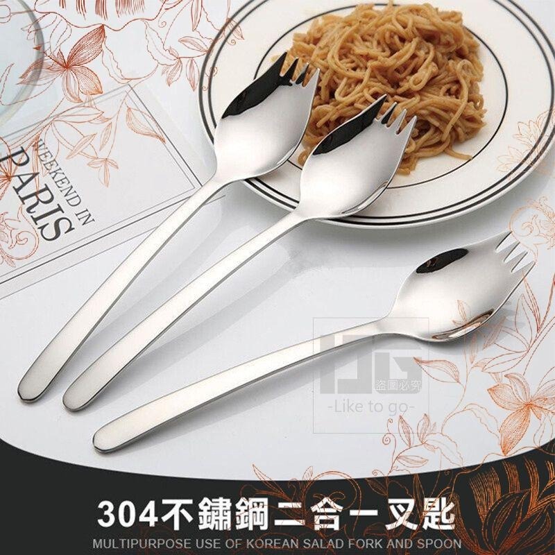 這時候多了這款叉子與湯匙結合的加厚304不鏽鋼兩用湯叉匙