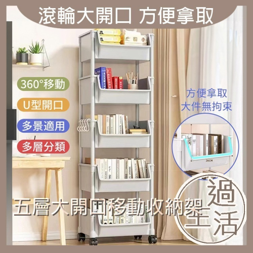 五層大開口可移動收納櫃,斜口滾輪設計,不浪費空間,實用高。