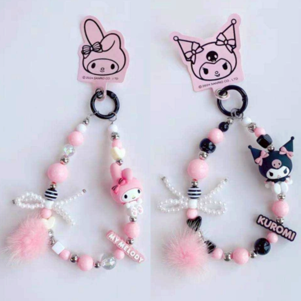 配有墊片可固定於手機外殼內,造型串珠設計,也可取下扣環當作鑰匙圈使用