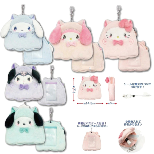 伸縮票卡夾,絨毛玩偶造型,後方透明視窗,拉鍊開口可放零錢/耳機