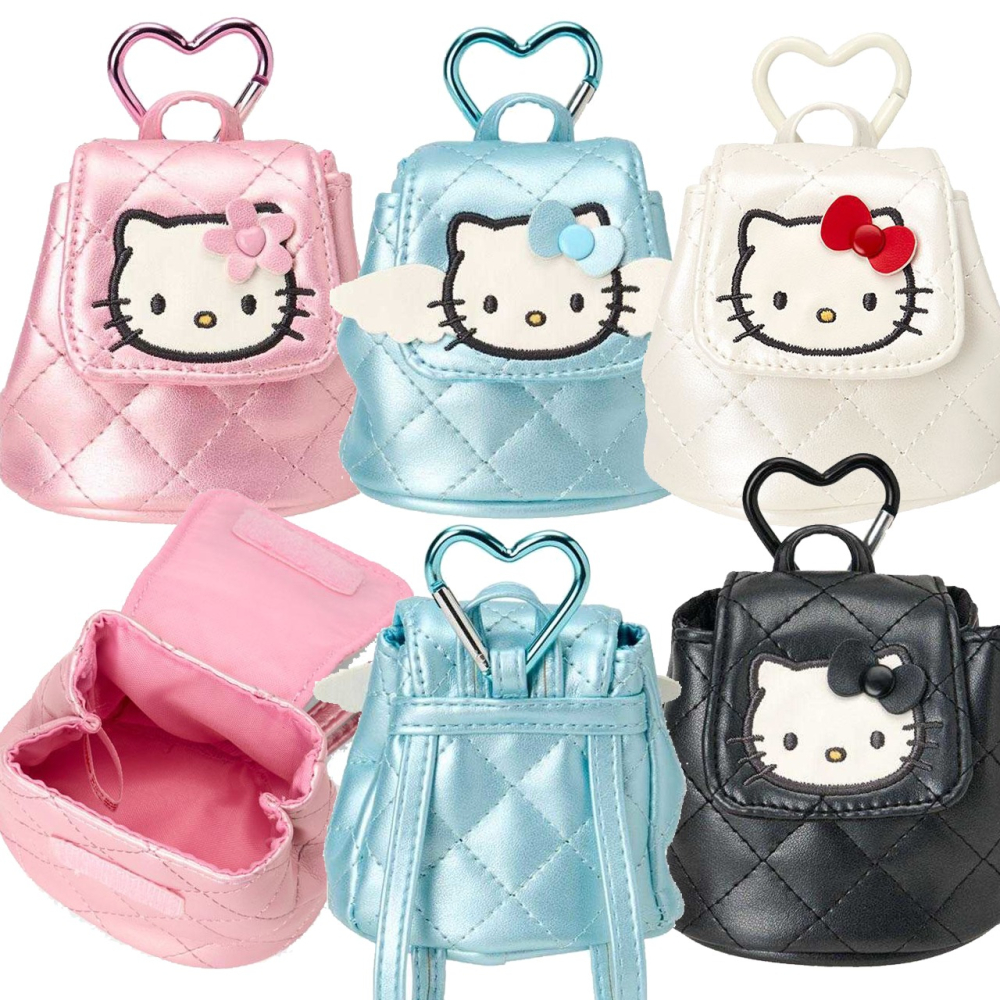 迷你後背包造型,菱格壓紋,魔鬼氈開口,可以放入化妝品/耳機等隨身小物,配有扣環可吊扣包包上隨身攜帶