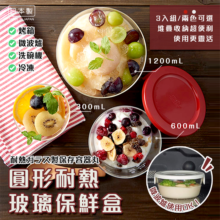 | 【日本製 HARIO 三入圓型耐熱玻璃保鮮盒】 |