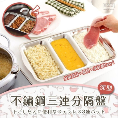 | 日本製【YOSHIKAWA】不鏽鋼三連分隔盤 備料盤 分隔盤 料理盤 (深型) |