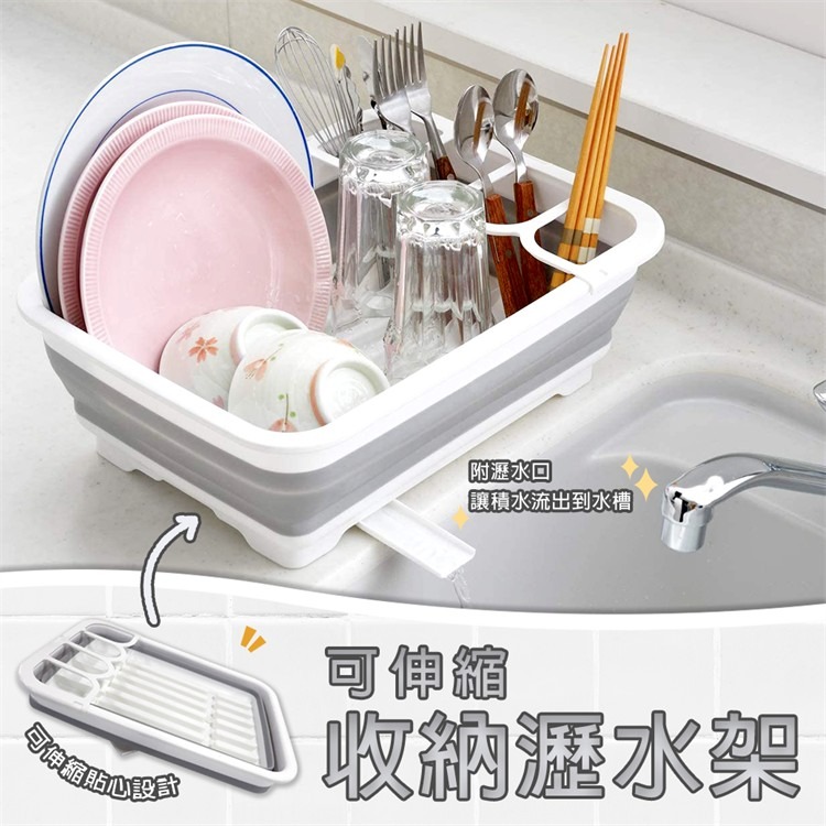 用來放置餐具,分隔讓您做分類收納,附瀝水口,可將洗好的餐具放入,讓積水從瀝水口流出到水槽,可伸縮貼心設計,讓您不用時可以伸縮收納,節省空間喔~ |