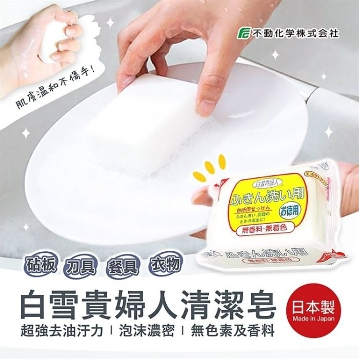 ★商品說明★★日本不動化學 製造的白雪貴夫人高品質廚房萬用洗潔皂無色素