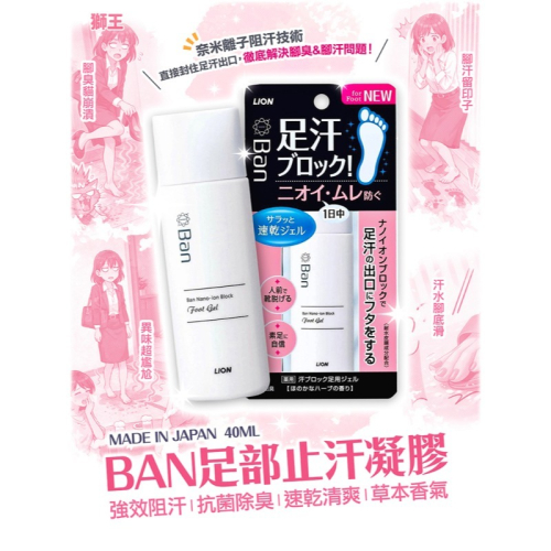 日本製【獅王】Ban足部止汗凝膠 速乾 消臭 腳汗