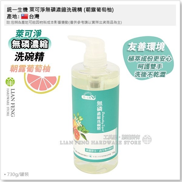統一生機無磷濃縮洗碗精(朝露葡萄柚)
