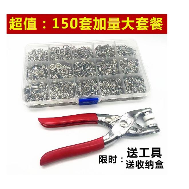 免縫不銹鋼五爪扣 150套【銀色】 +工具+收納盒