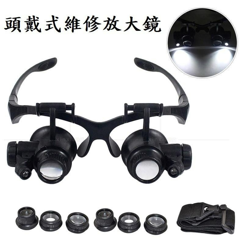 附頭帶 含4個倍鏡 LED燈放大眼鏡 頭戴式放大鏡 頭戴式維修放大鏡 內建LED高清眼燈 鑑定 古玩 手機維修 鐘錶維修