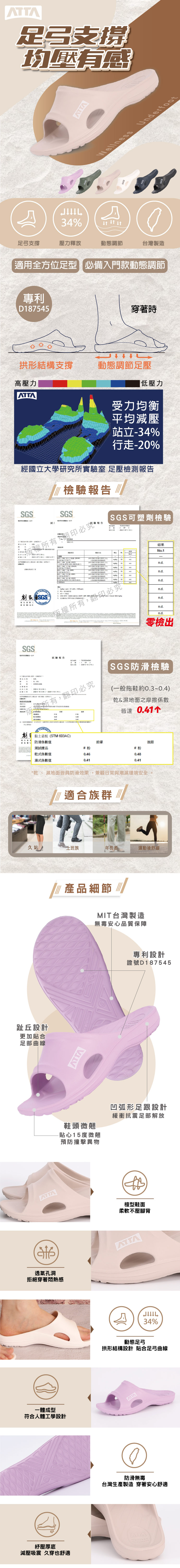 【ATTA】足底均壓★ 足弓簡約休閒拖鞋 足壓分散/足弓支撐/一體成型/台灣製/防水/原廠公司貨