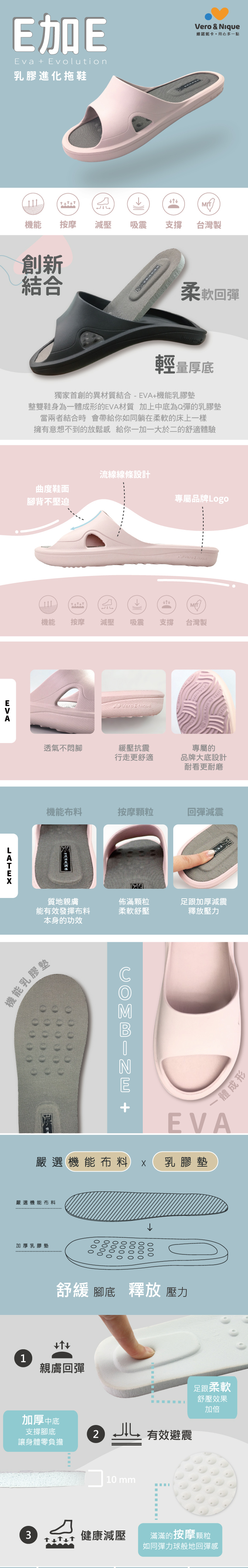 【維諾妮卡】回彈釋壓★E加E乳膠進化拖鞋(3色) 台灣製造 柔軟乳膠 居家拖鞋 有感舒適 按摩顆粒