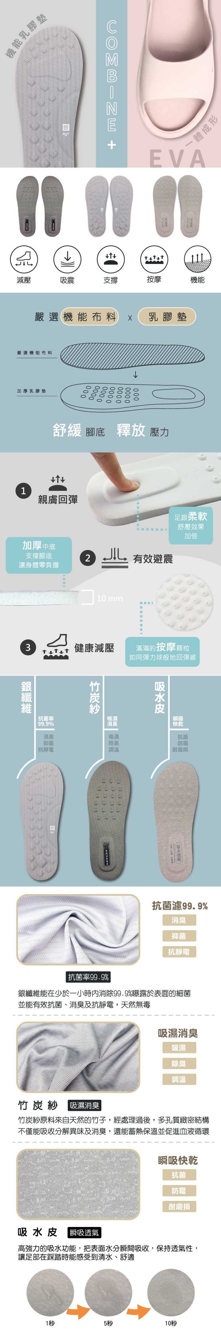 材質:機能面料(銀纖維/竹炭紗/吸水皮)、乳膠