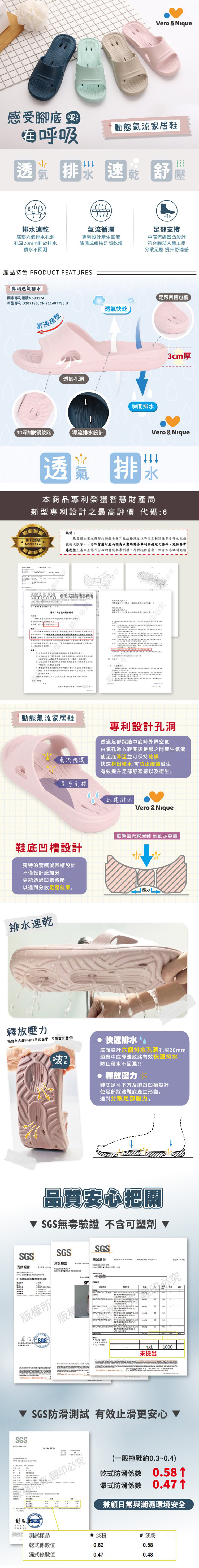 【維諾妮卡】 動態氣流排水家居鞋(4色) 首創專利 台灣製造 排水孔洞 速乾清爽 人體工學 分散族壓