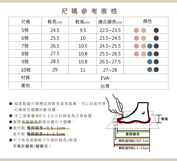 尺寸:5號24.5cm、6號25.5cm、7號26.5cm、8號27.5cm、9號28.5cm、10號29cm
