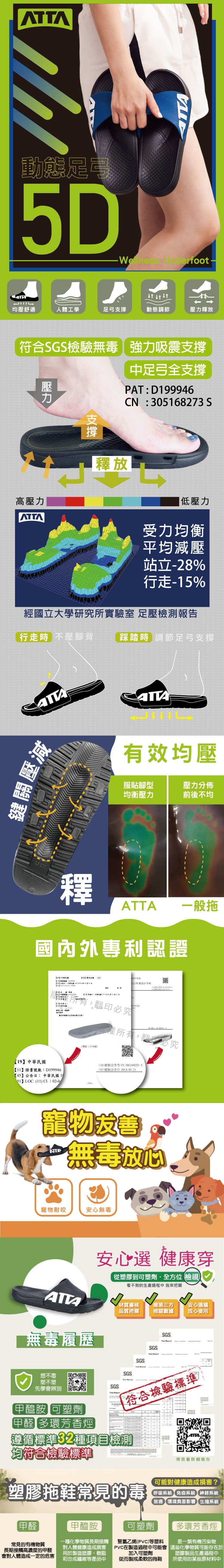 【ATTA】動態調節★5D動態足弓均壓拖鞋 (4色) 動態足弓/均壓舒適/人體工學/足弓支撐/動態調節/壓力釋放