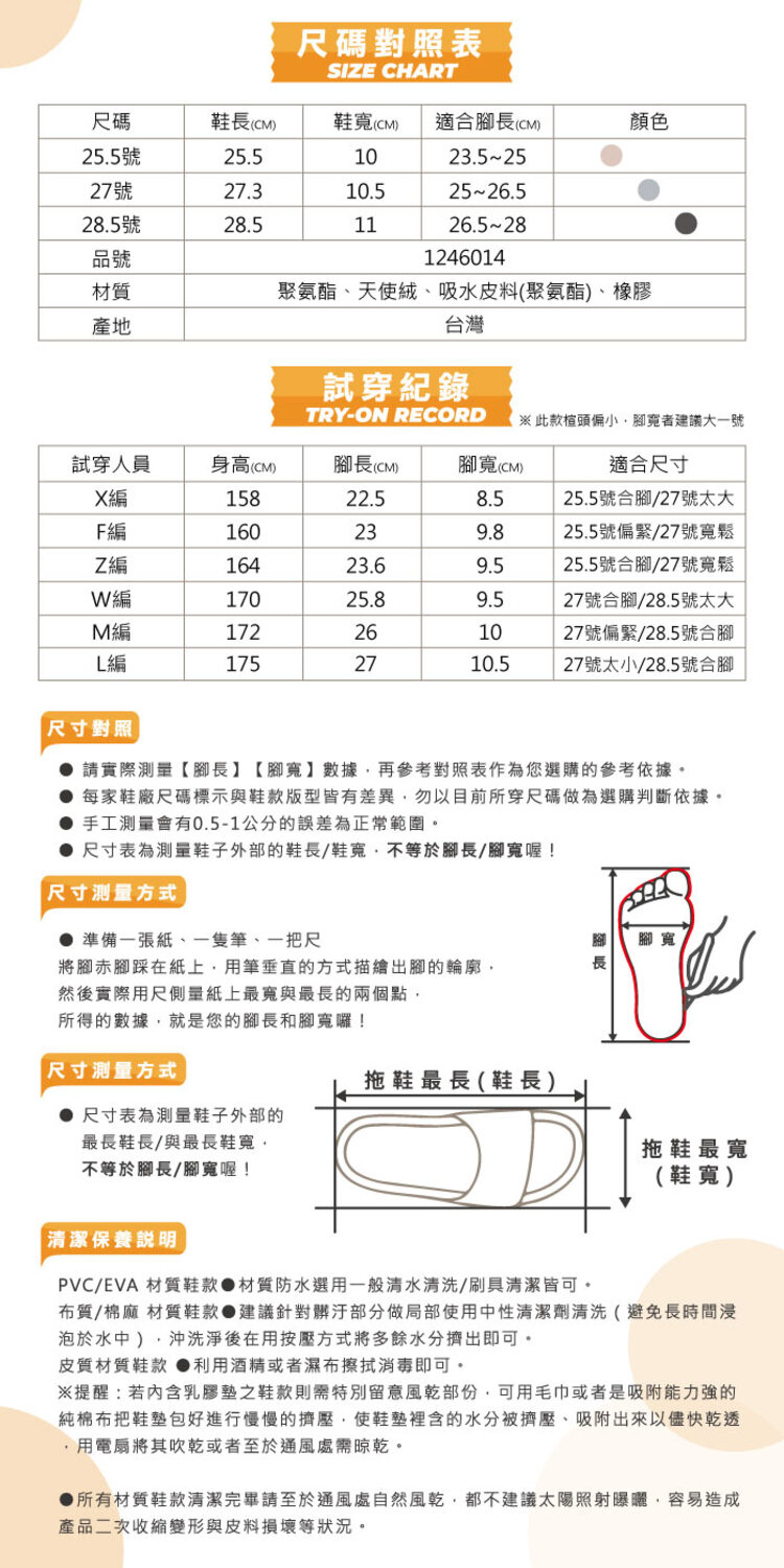 材質:聚氨酯、天使絨、吸水皮料(聚氨酯)、橡膠