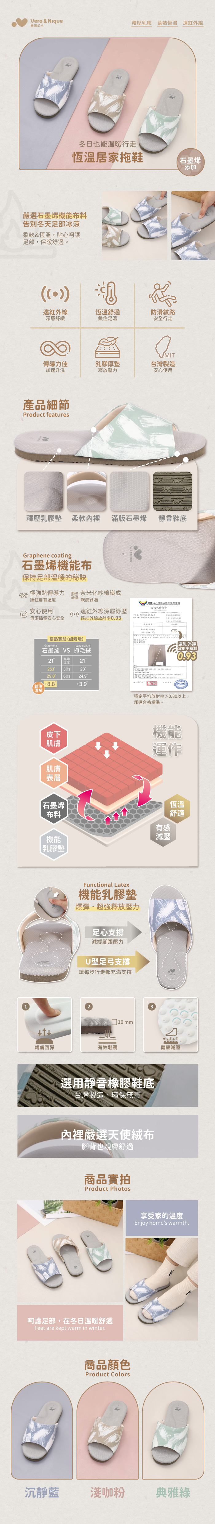 【維諾妮卡】保暖釋壓★文青石墨烯悠能室內拖鞋(三色)
