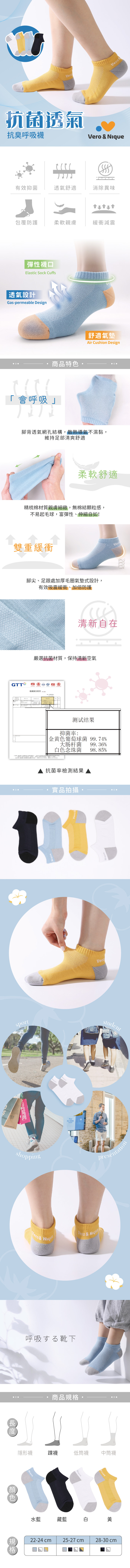 【維諾妮卡】緩衝支撐★抗臭呼吸襪-水藍/藏青/白/黃