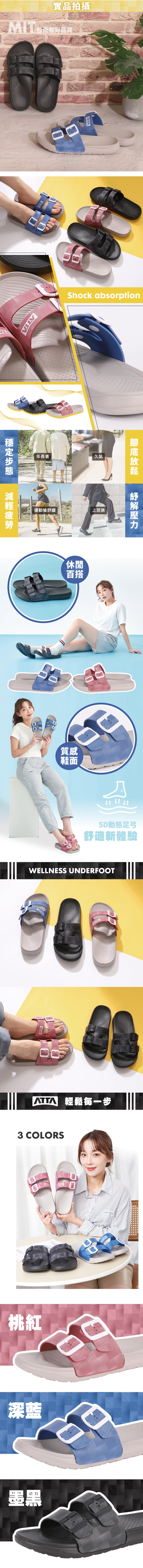 • 「ATTA」為專注於「足弓支撐」的拖鞋品牌,擁有獨創的 「 動態足弓設計 」 ,能夠自適應不同足弓形狀,不僅滿足舒適和支撐需求 ,更為常見足部問題如足底筋膜炎、扁平足帶來解決方案 。如同品牌標誌的象徵一樣 ,將持續以 「 足弓支撐解決方案 」 為核心 ,期望搭建人們 「 邁向健康的橋樑 」!