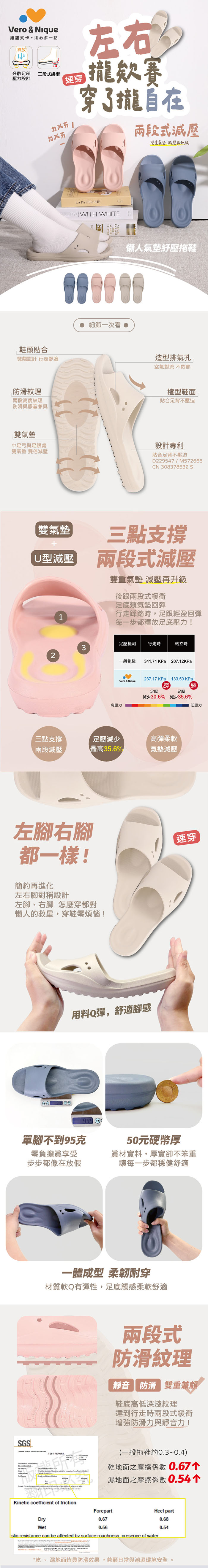 【維諾妮卡】懶人氣墊紓壓拖鞋 (3色) 台灣製/SGS檢驗合格/無毒認證/輕量舒適/三點支撐/一體成型/防滑耐走