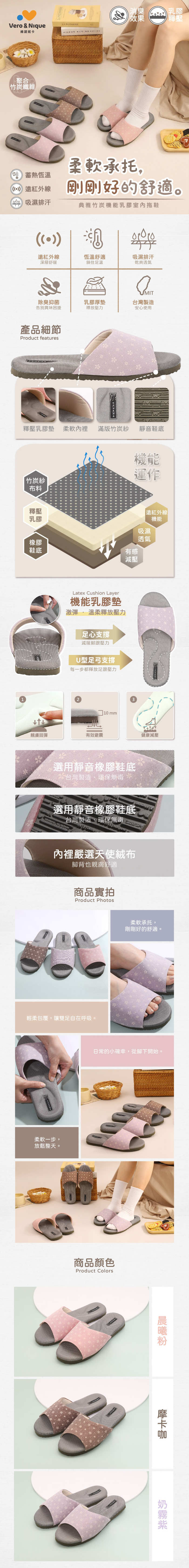 【維諾妮卡】透氣舒適★典雅竹炭機能乳膠室內拖鞋