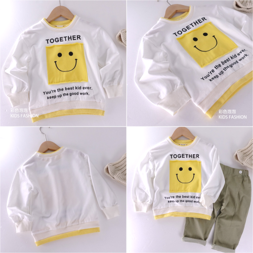 ○。° 彩色泡泡 °。○ 童裝【貨號F31546】秋冬。白色滾黃邊笑臉棉T