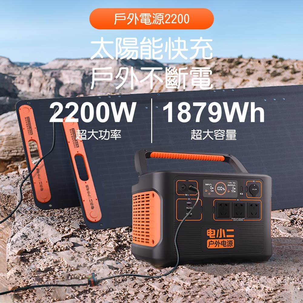 內容物:戶外電源2200,車載充電器,AC充電線,太陽能板串聯線x2,配件收納盒