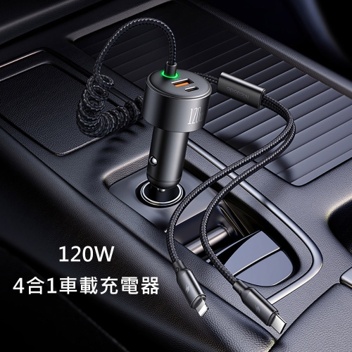 產品名稱:120W 4合1彈簧數據線雙口雙線快充車載充電器A+C