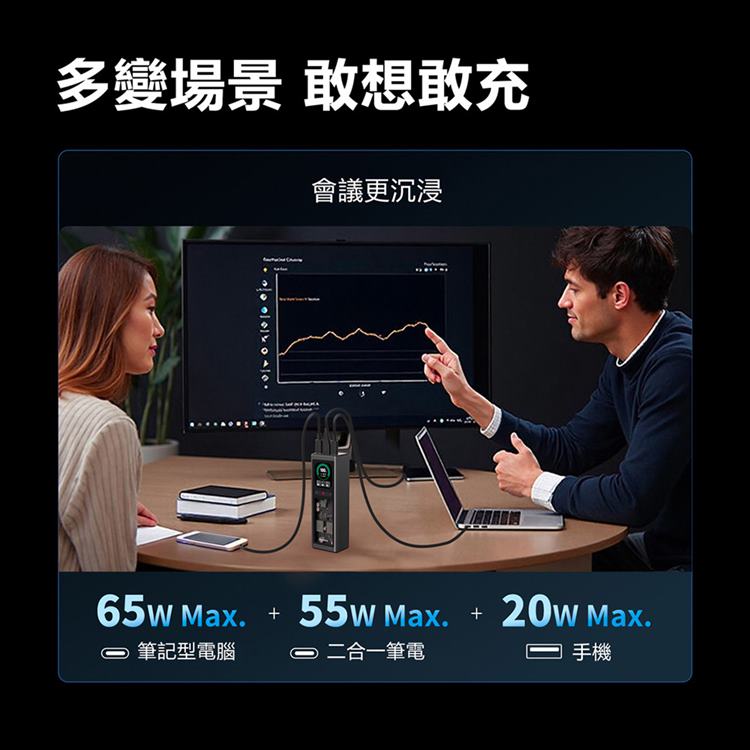 雙口輸出Type-C2+USB-A:65W+30W(95W Max.)