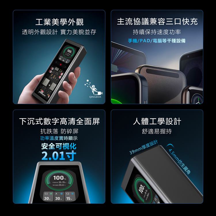 雙口輸出Type-C1+USB-A:100W+30W(130W Max.)