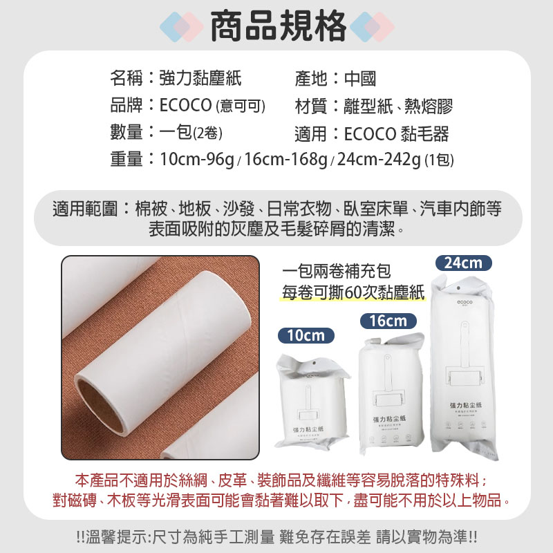 ECOCO|黏毛器補充包 黏塵紙 黏毛紙 除塵 清潔 替換 紙芯 適用 意可可 除塵滾輪 黏毛器 黏毛滾筒