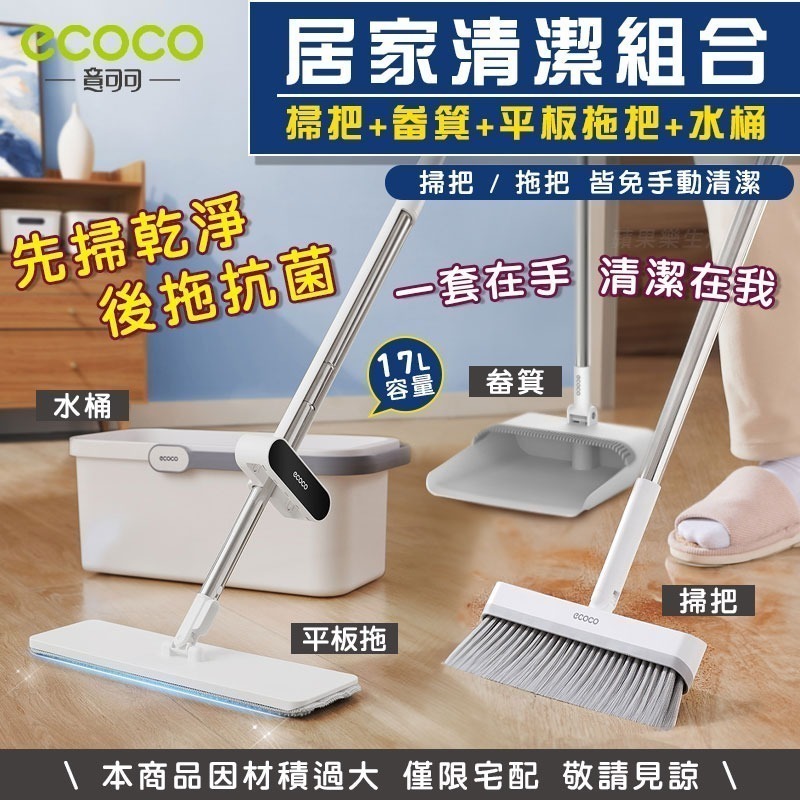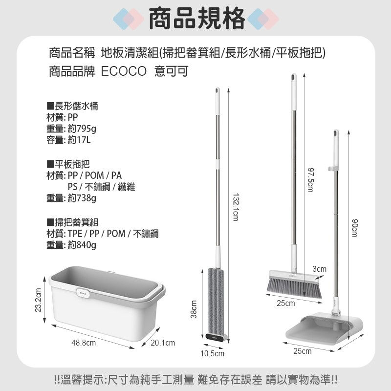 內容:掃把、畚箕、平板拖把(含拖布)、水桶x1
