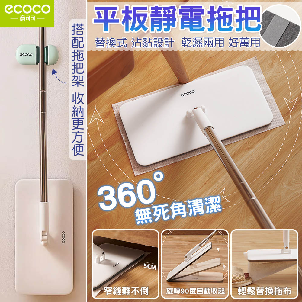 替換拖把x1+兩款替換拖布x1(除塵&除菌)+拖把架x1(側入/直入)
