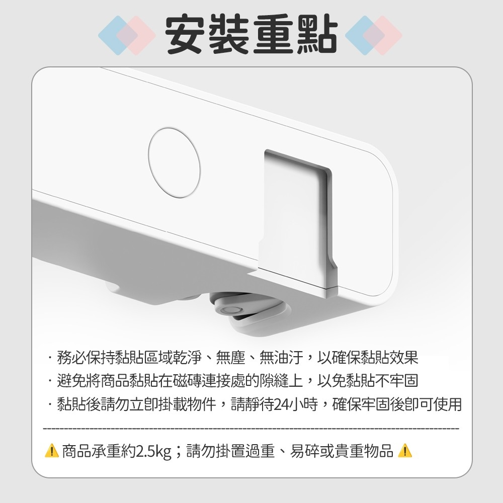承重:請勿超過2.5kg(掛勾建議不超過1kg)