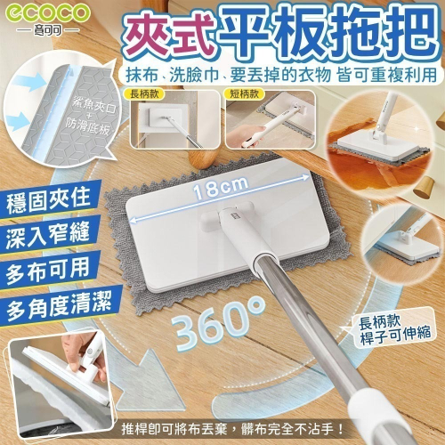 🌟【ecococ 原廠授權】洗臉巾拖把|一推即拆!懶人清潔神器💧環保升級版♻️