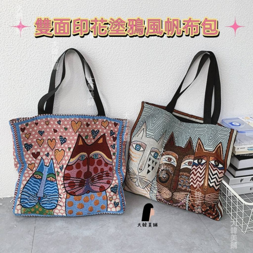 <日韓包款> 印花塗鴉風帆布包 百搭包/編織包/ 手提包/肩背包/側背包/信封包/包包/斜背包