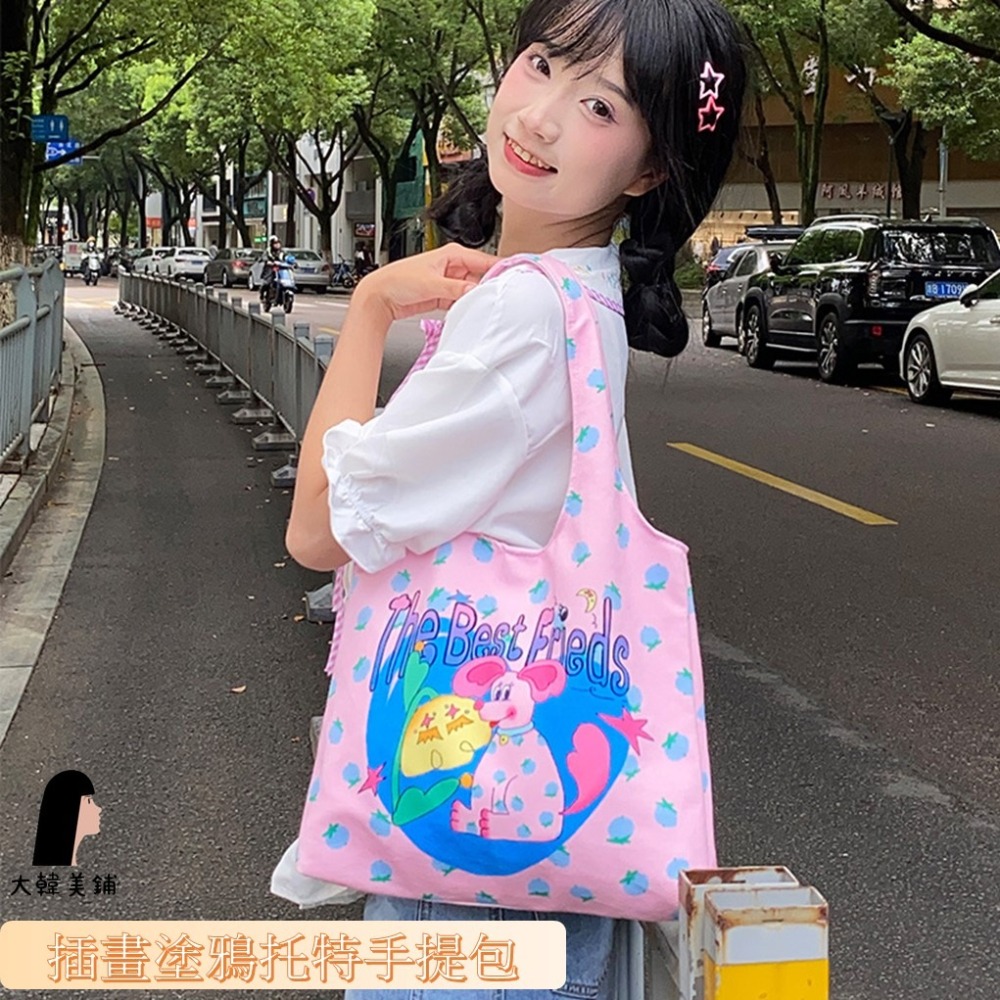 <日韓包款>普普風插畫塗鴉托特手提包 百搭包/編織包/ 手提包/肩背包/側背包/信封包/包包/斜背包