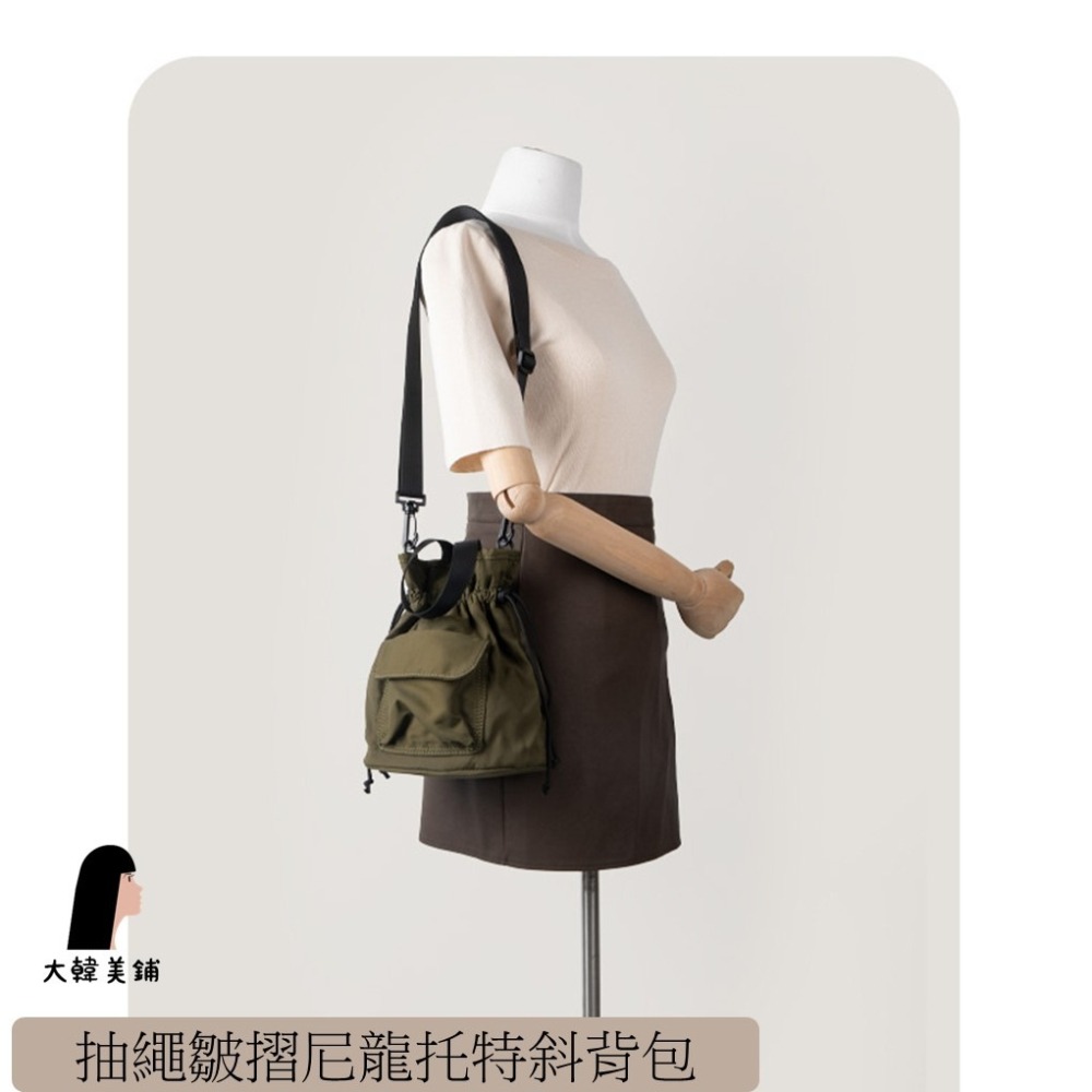 <日韓包款>抽繩皺摺尼龍托特斜背包 百搭包/手拿包/ 帆布包/肩背包/側背包/信封包/包包/斜背包