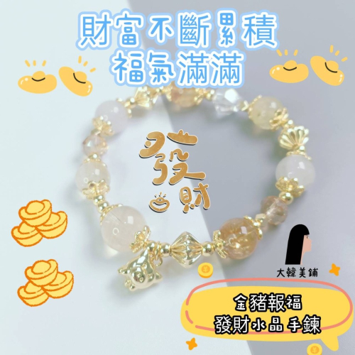 這款手鍊以黃水晶與黃髮晶組合而成,搭配精緻的金豬吊墜,散發出溫暖富貴的氣息。