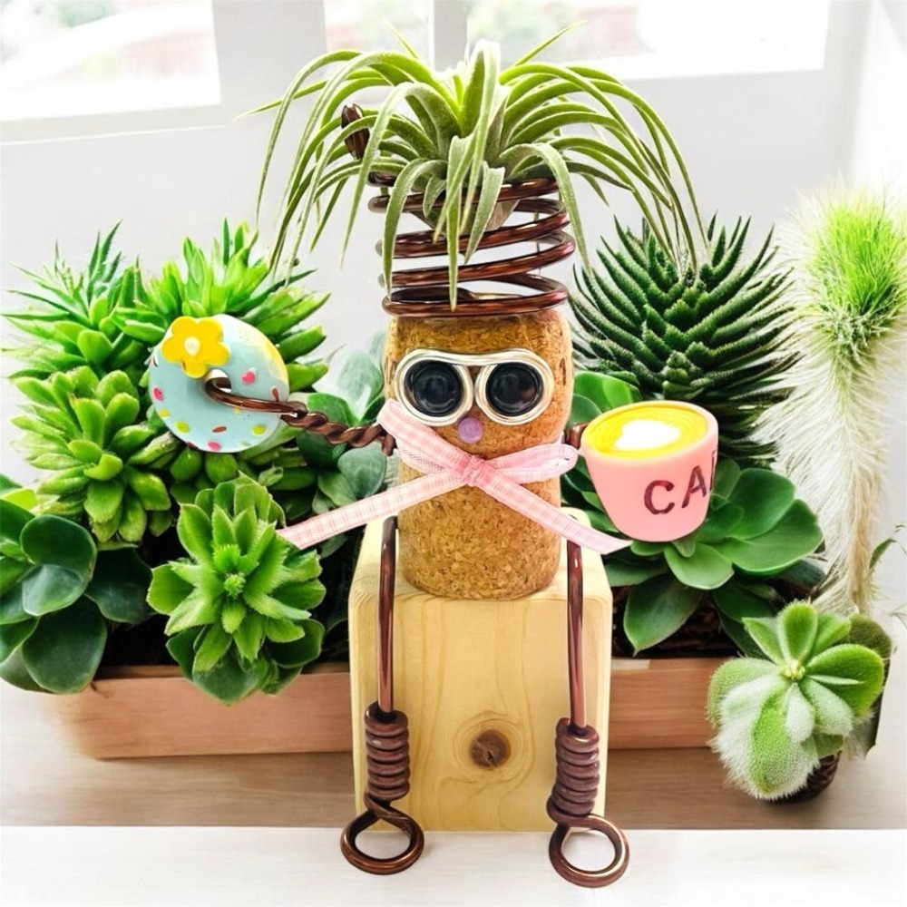 微甜多肉小陽台.空氣鳳梨的家|鋁線手作.Chill 植感杯杯軟木塞人偶×積木座(不含空鳳)