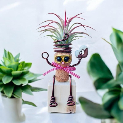 微甜多肉小陽台.空氣鳳梨的家|鋁線手作.童趣小物~軟木塞娃娃空鳳架×積木座(不含空鳳)