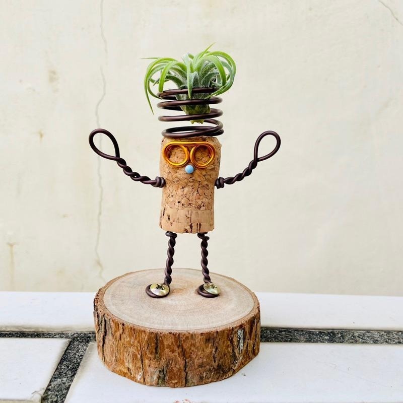 微甜多肉小陽台.空氣鳳梨的家|鋁線手作.快樂小人軟木塞空鳳架(不含植物)