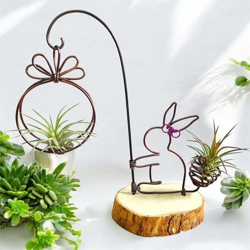 微甜多肉小陽台.空氣鳳梨的家|鋁線手作.小兔兔與她的禮物.樟木底座(不含植物)