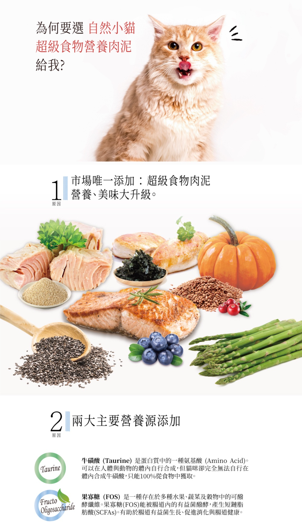 市場唯一添加超級食物配方,並有豐富的牛磺酸及果寡糖