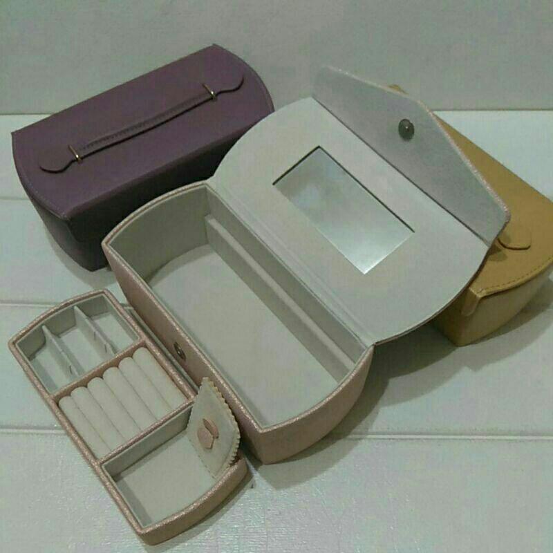 全新 現貨 高品質 庫存品 破盤 出清 化妝箱 首飾盒 珠寶盒 皮革 外表 絨布內裡 時尚 品味 好攜帶 收納 神器 盒